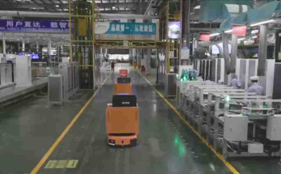 为车载冰箱物流配送打造的智能解决方案,,包含产中物流通过潜伏举升AMR搬运至线边,,产后成品物流智能仓储,,,流程包含产中物流智能齐套入库,,线边安灯叫料AMR智能配送至线边,,,成品入库、、、出库,,通过无人堆高车机器人,,,智能仓储管理替代人工作业管理,,,,实现更高存储、、更高效率、、、更具柔性化的解决方案。。。